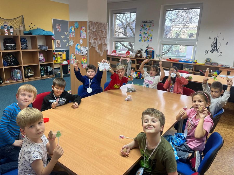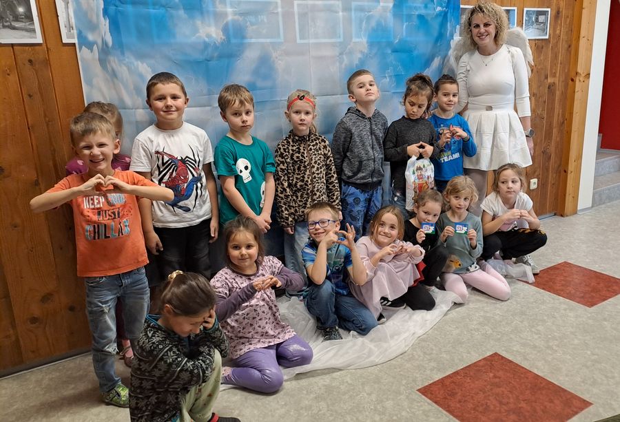 Děti se snažily ze všech sil – smály se, pomáhaly si a užívaly si atmosféru plnou světýlek a jemné hudby. Poté, co prošly všechny úkoly, čekal je ten nejkouzelnější moment – vstup do nebe. Dveře zdobené andílky a zářivými paprsky je zavedly do místnosti, kde je přivítal opravdový anděl. Anděl děti pochválil za jejich snahu, trpělivost i spolupráci. Každé dítě pak dostalo andělskou odměnu – sladkost a medaili, která symbolizovala splnění celé cesty.