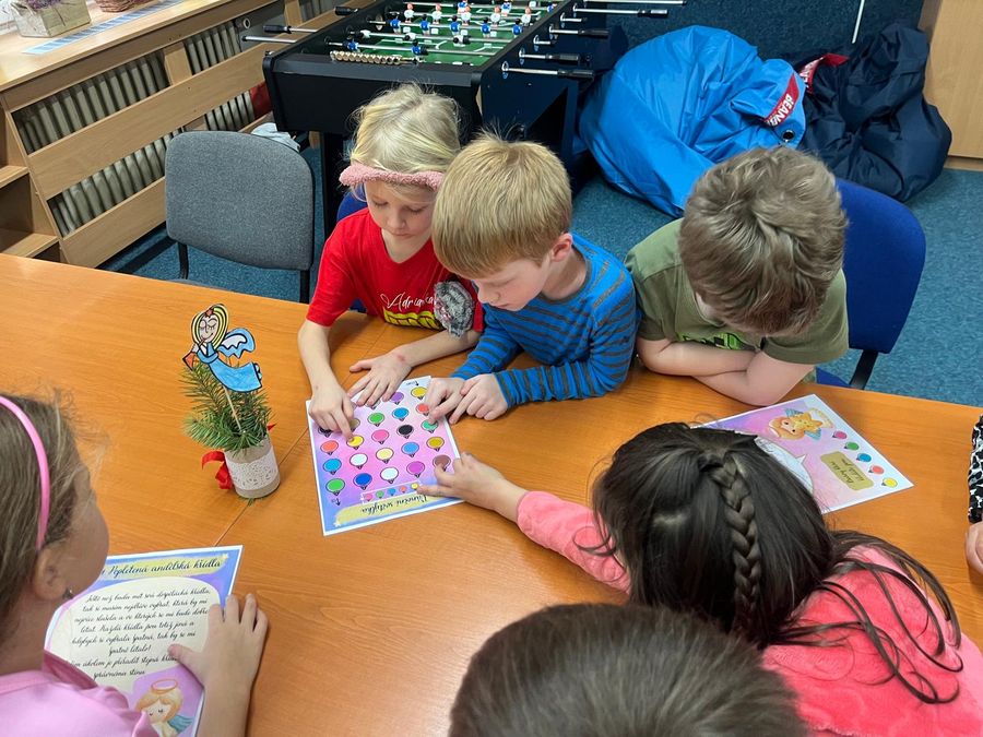 V naší družině jsme si připravili výjimečné předvánoční odpoledne – „Andělskou cestu“. Celá akce byla navržena tak, aby děti zažily radost, spolupráci i trochu tajemství. A jak to celé probíhalo? Děti se postupně vydávaly do různých oddělení družiny, kde na ně čekaly tematické andělské úkoly. Každé oddělení nabídlo jiný typ aktivity – od přemýšlení přes tvoření až po pohybové výzvy. Děti musely společně spolupracovat, vhodně se domlouvat a plnit úkoly tak, aby pomohly andělce získat symbolické „nebeské body“.