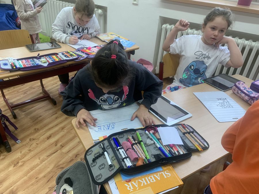 Ve výuce využívají různé pomůcky a aktivity si zpestřují prací s iPady, které už velmi dobře ovládají. Baví je práce s QR kódy i dalšími vzdělávacími aplikacemi. Učení je pro ně objevováním a radostí.