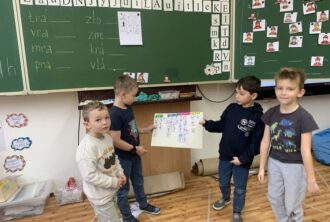 Děti z 1. B mají za sebou první půlrok školní docházky a udělaly obrovský kus práce. Každý den se snaží a jejich pokroky jsou opravdu viditelné. Dnes už dokážou přečíst krátké věty, počítají do 10, píší psacím písmem slova i jednoduché věty a zvládají plnit rozmanité úkoly. Postupně se učí pracovat ve dvojicích i ve skupinách, vzájemně si pomáhat a stále častěji také samostatně vyjádřit a obhájit svůj názor.