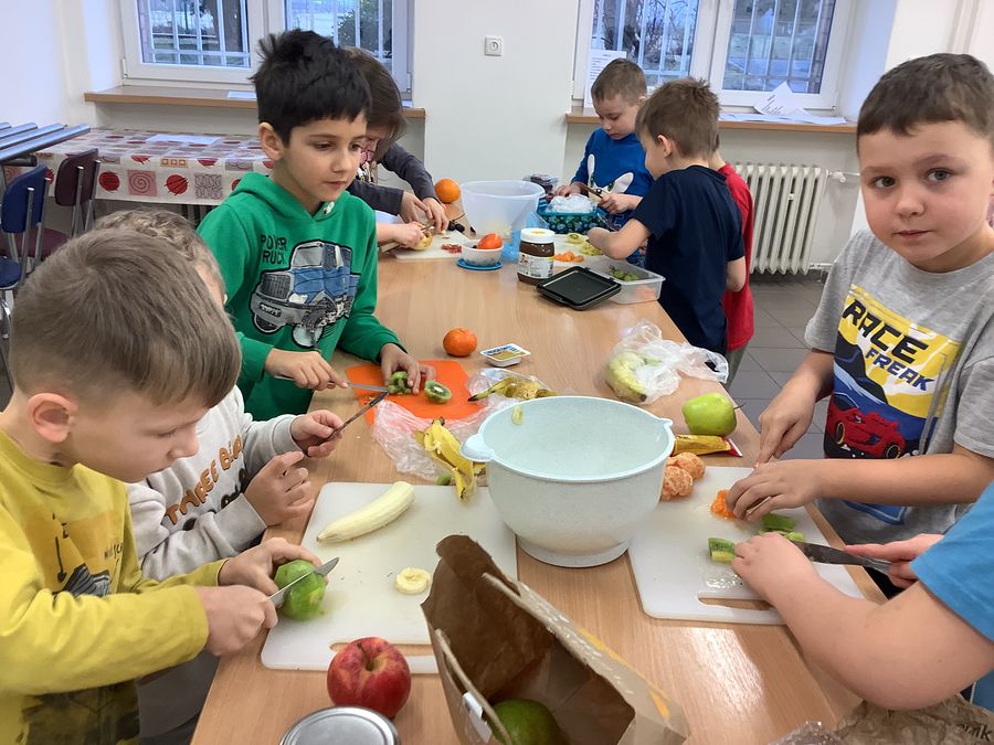Součástí výuky jsou také pohybové, tvořivé a praktické činnosti. Děti rády sportují, tvoří, zpívají, ale také vaří a šijí.