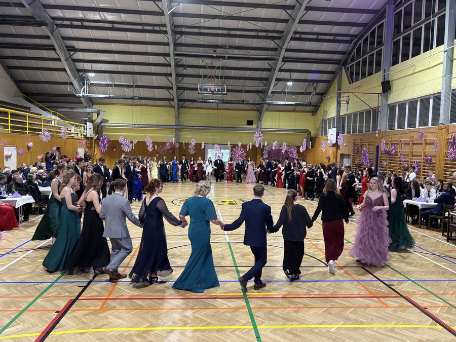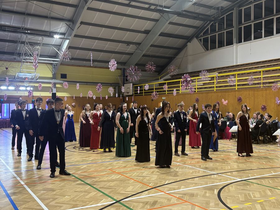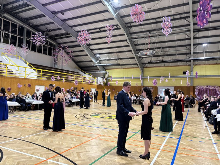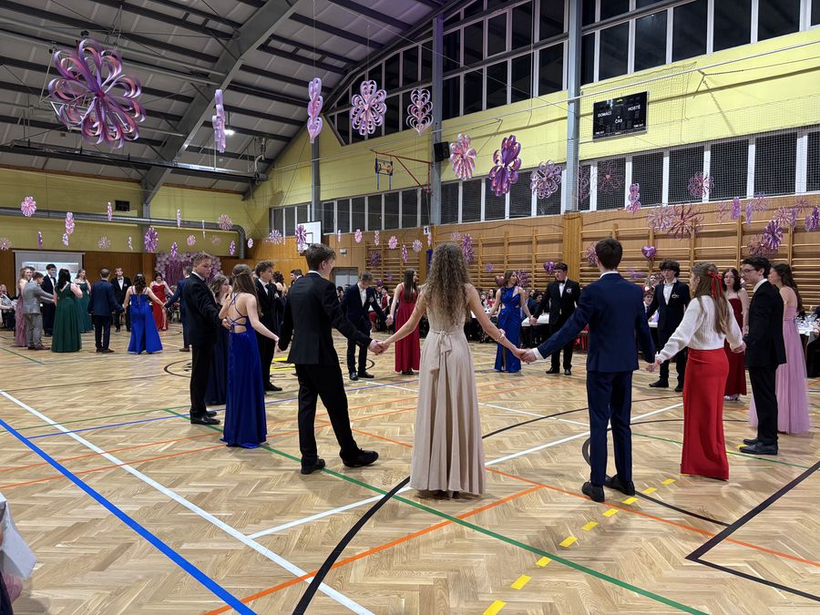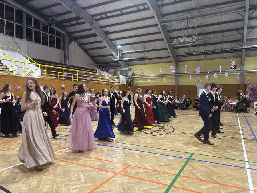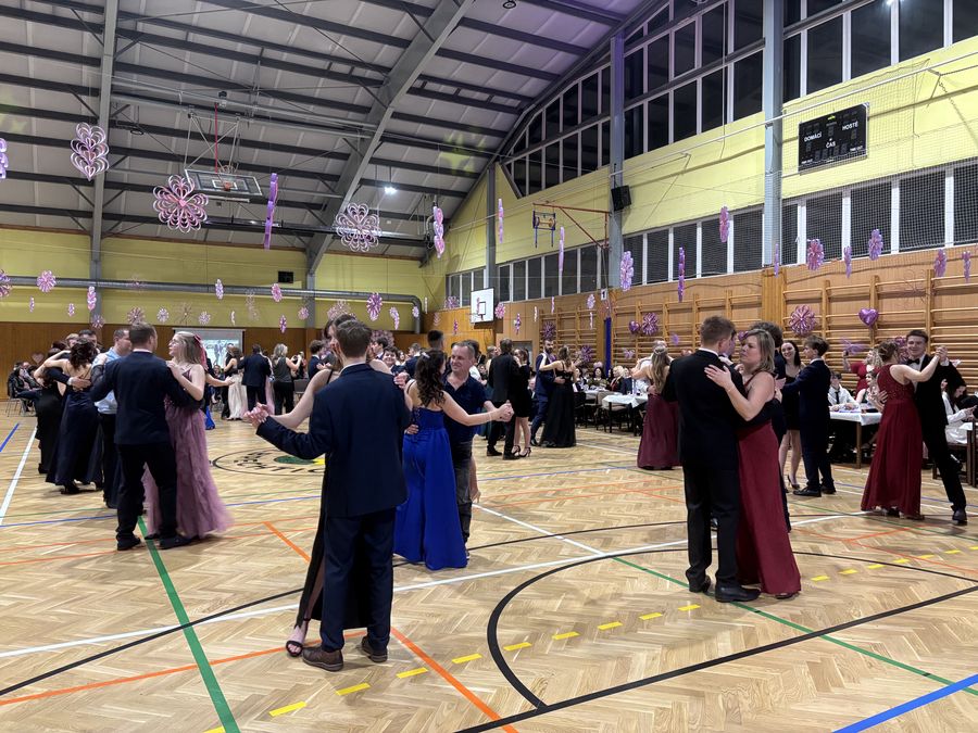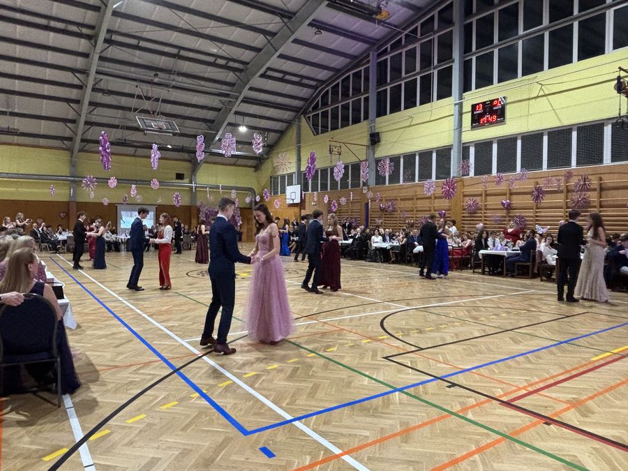 Po závěrečném vystoupení následovala volná zábava, kterou si žáci užili naplno, a parket zůstal plný ještě dlouho do večera. Na závěr bychom rádi poděkovali všem sponzorům, účastníkům, učitelům i organizátorům, kteří se na přípravě této krásné akce podíleli. Velké poděkování patří především našim šikovným deváťákům, kterých byl letos rekordní počet a kteří dokázali vytvořit nezapomenutelnou atmosféru.