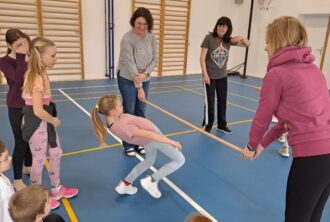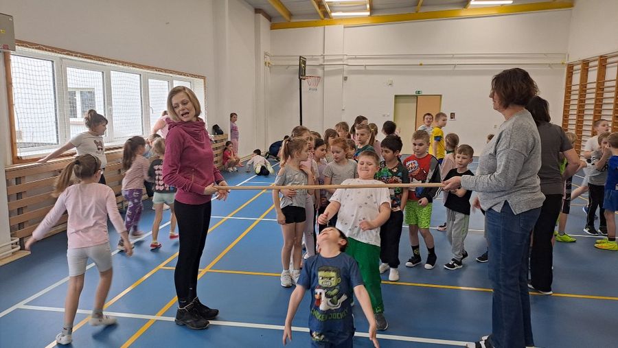 V úterý 31.března uspořádala družina celodružinovou sportovní akci. Děti vyměnily bačkory za sportovní obuv a sešly se v tělocvičně, aby poměřily své síly, ohebnost a smysl pro rytmus v oblíbené disciplíně – Limbo. Odpoledne se neslo v duchu hesla „Protancuj se pod překážkou“. Než se ale pustily do opravdového klání, čekala na všechny rozcvička. Během dvou zkušebních kol si děti nanečisto vyzkoušely tu správnou techniku, jak se co nejlépe zaklonit a přitom neztratit rovnováhu.