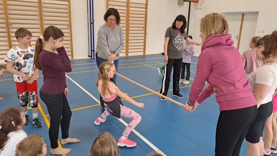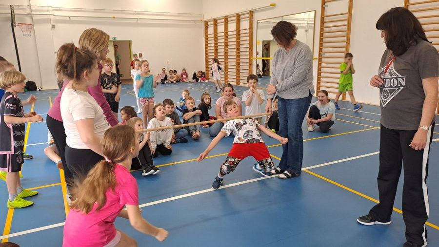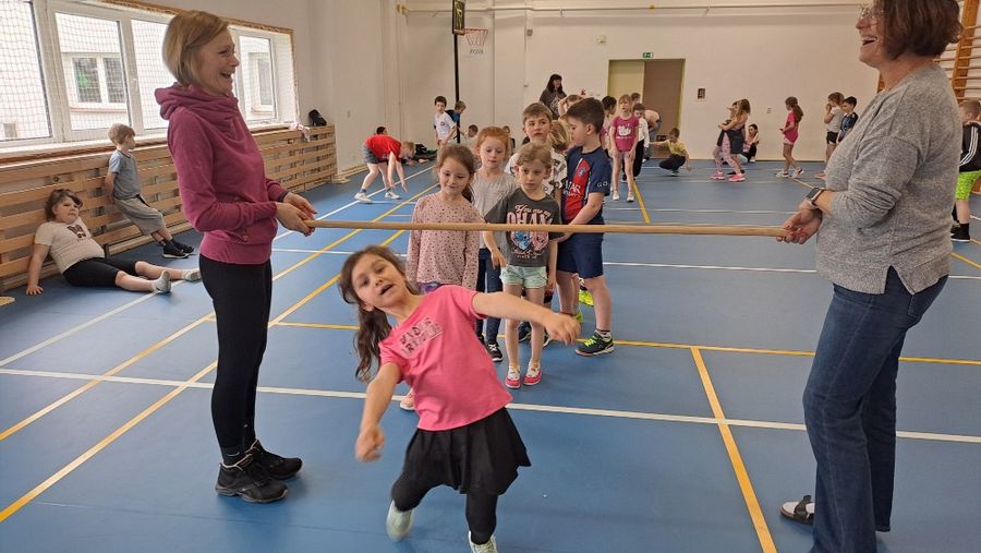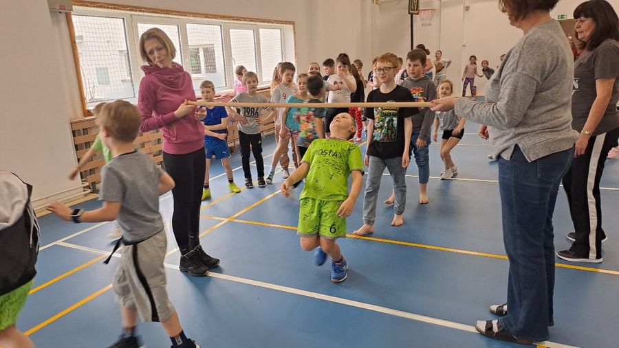 Jakmile zazněly první tóny dynamické hudby, soutěž vypukla naplno. Pravidla byla neúprosná: projít pod nastavenou tyčí v záklonu, aniž by se jí kdokoli dotkl nebo upadl. S každým dalším kolem laťka klesala níž a níž, což znamenalo postupné vyřazování těch, kteří na překážku narazili. Napětí v tělocvičně gradovalo až do samotného finále, do kterého se probojovalo šest nejšikovnějších dětí.