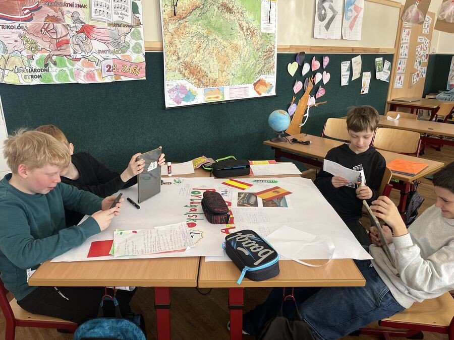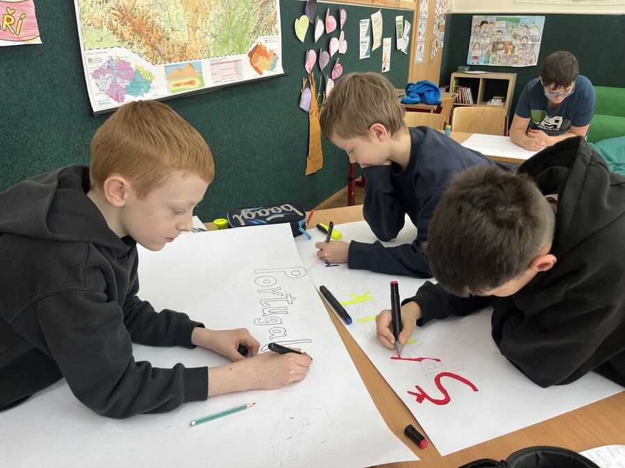 Projekt o Evropě nás moc bavil. Naučili jsme se spoustu nových informací a pracovali jsme různými způsoby – ve skupinách, na mapách, s glóbusy a s moderní technikou, ale i hrou. V hudební výchově jsme si zazpívali rytmickou píseň Napříč kontinenty. Na tabuli jsme si vytvořili vlastní mapu.
