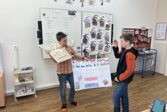 V pětce jsme ve vlastivědě rozjeli projekt o Evropě. Nejprve jsme si povídali o tom, kde Evropa leží a jakou má polohu na mapě. Zjišťovali jsme, že je součástí světadílu Eurasie a leží na severní polokouli. Učili jsme se o povrchu Evropy – hledali jsme pohoří, nížiny i řeky. Povídali jsme si o vodstvu, o mořích a oceánech, které Evropu omývají. Zkoumali jsme také poloostrovy a ostrovy. V krajinách nám hodně pomohl lapbook, který jsme si vytvořili v přírodovědě.