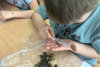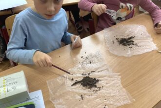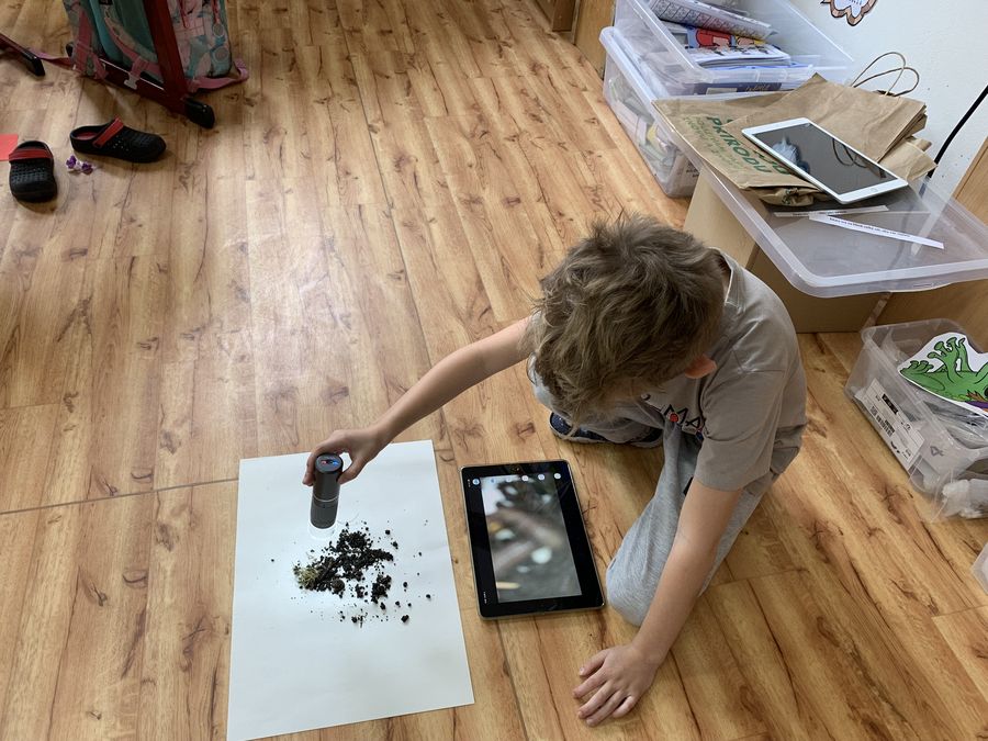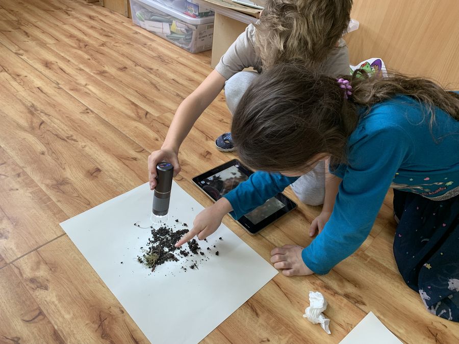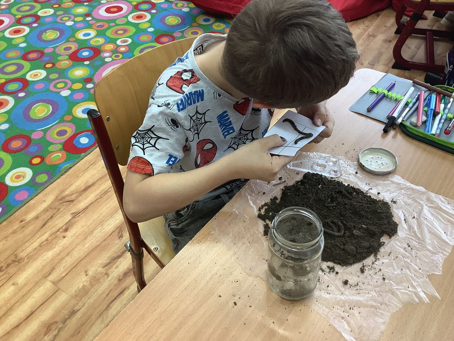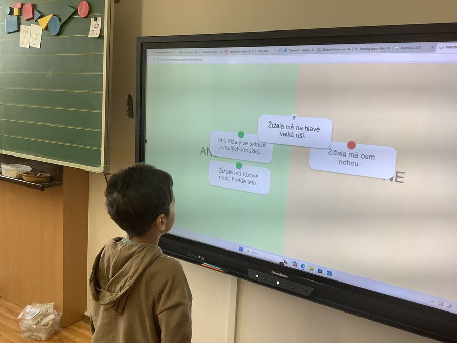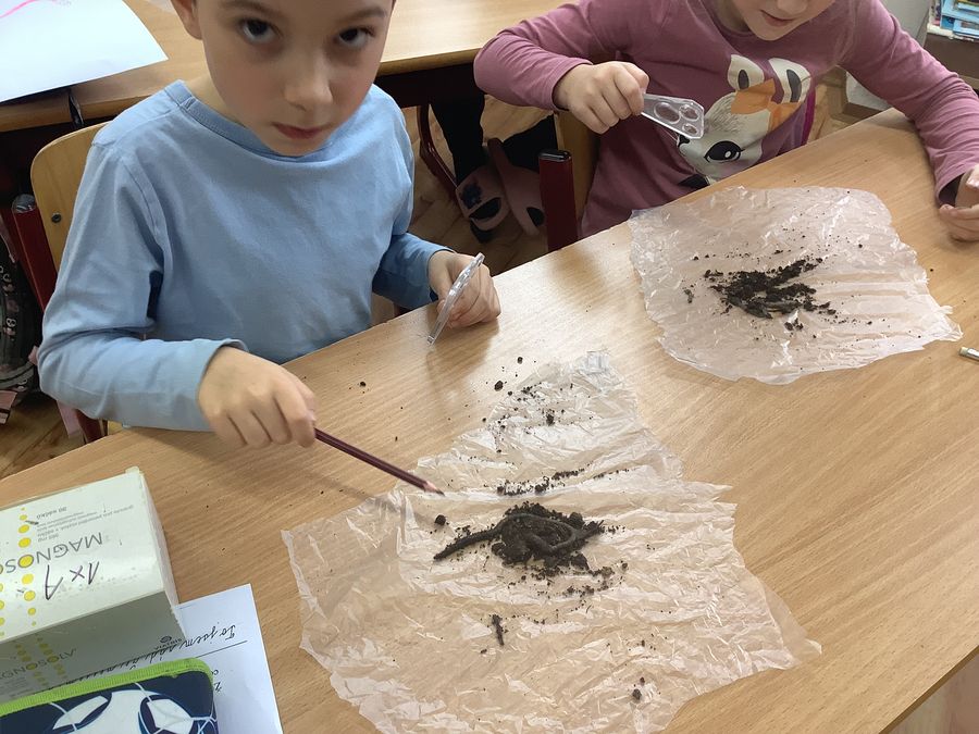 V rámci výuky jsme se věnovali písmenku Ž, které jsme si spojili s tématem žížaly. Z prvňáčků se na několik dní stali malí badatelé, kteří objevovali tajemství tohoto nenápadného, ale velmi zajímavého živočicha. Nejprve si přečetli různé informace o žížale a ve dvojicích přemýšleli nad tím, co je pravda a co ne. Své domněnky pak ověřovali pozorováním, pomocí lupy i mikroskopu měli možnost prozkoumat žížalu opravdu zblízka.