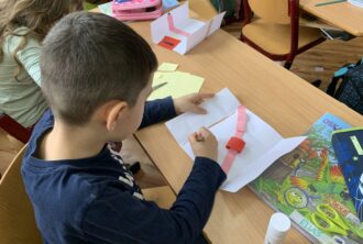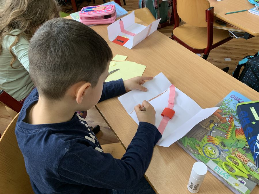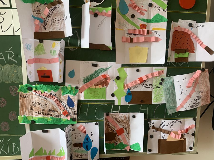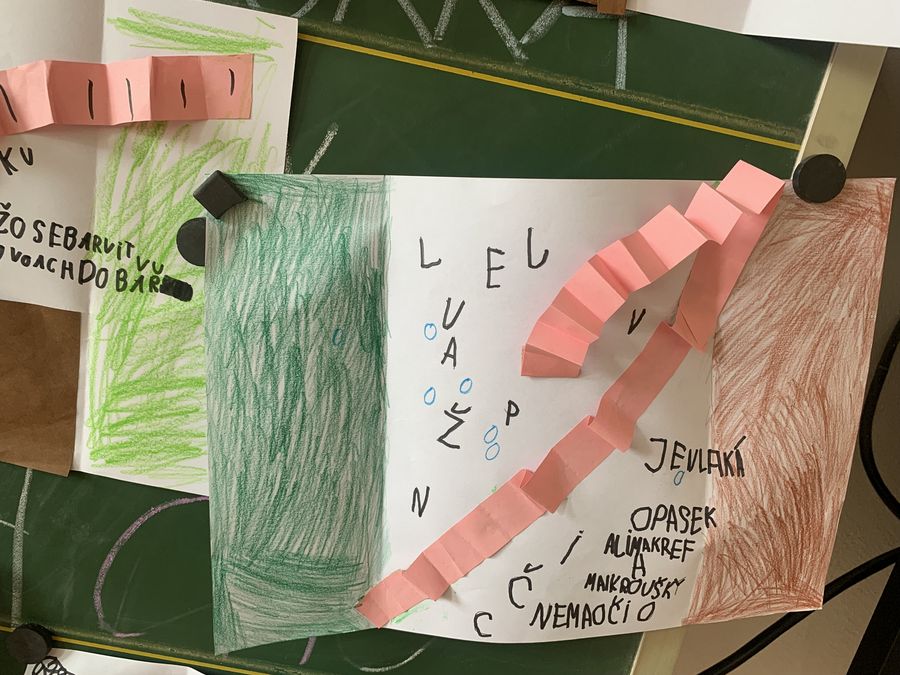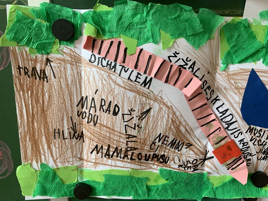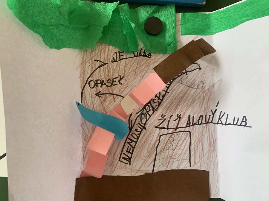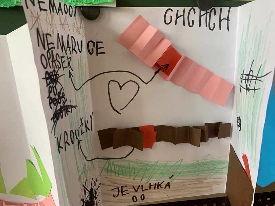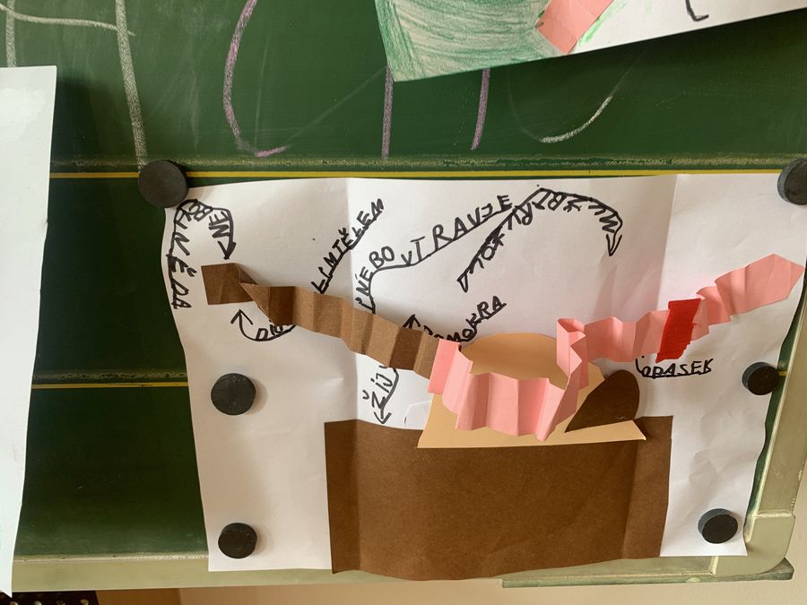 Získané znalosti si vyzkoušeli také v aplikaci LearningApps, kde si formou her ověřili, co si zapamatovali. Na závěr celé téma zpracovali do vlastních „žížalích“ lapbooků, ve kterých shrnuli vše, co se naučili. V tělocviku si vyzkoušeli, jaké to je být žížalou v zemi, když překonávali překážkovou dráhu plnou tunelů a úzkých prostor.