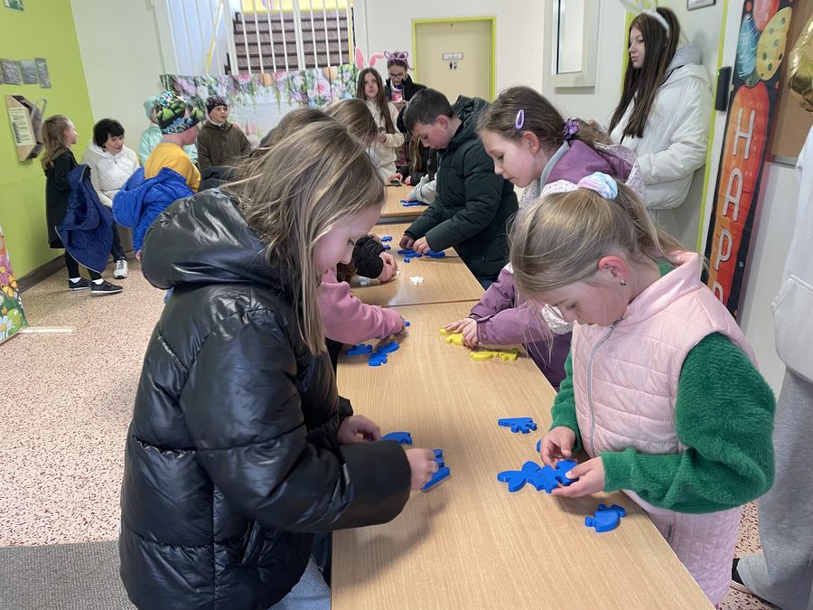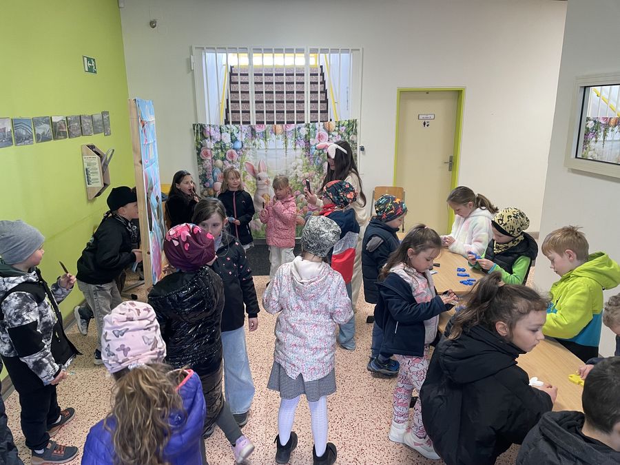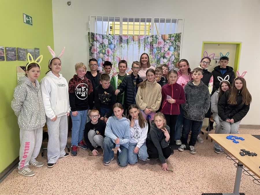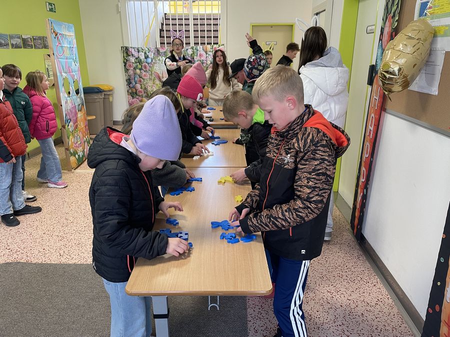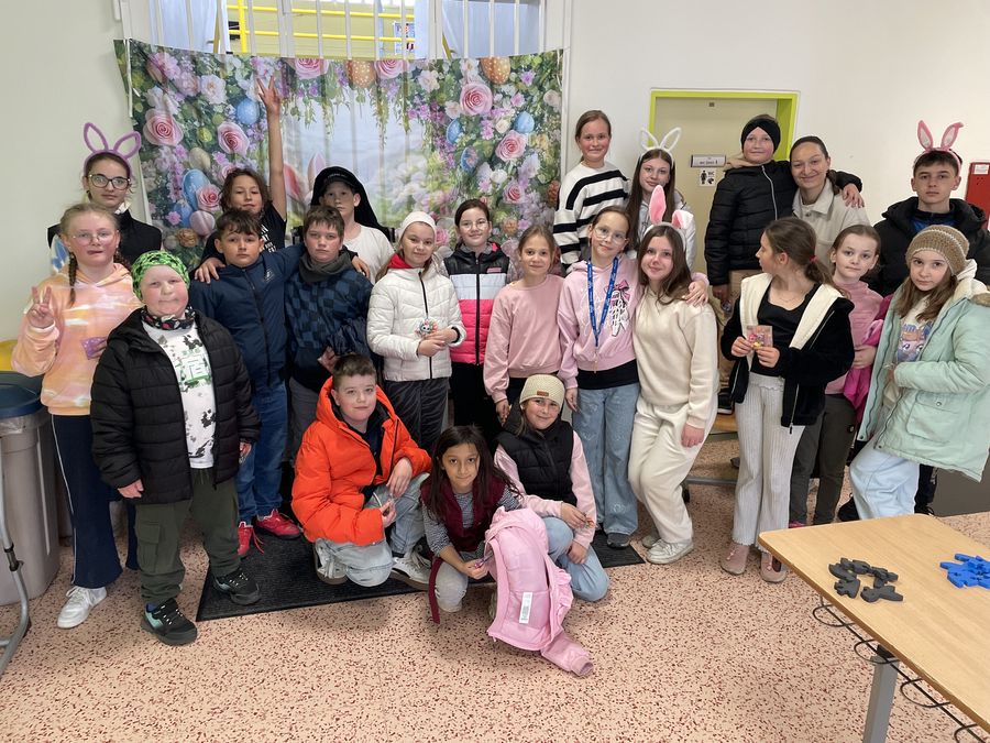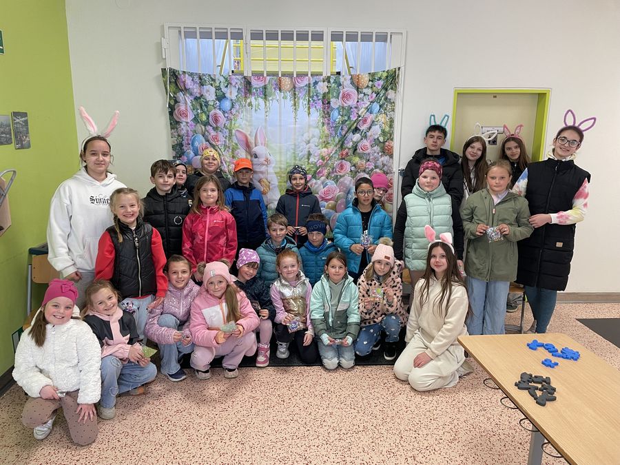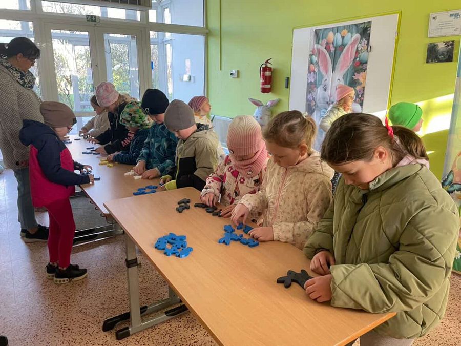 Po skončení venkovní části se program přesunul do tepla, kde na děti čekala druhá aktivita. Tentokrát se propojila tradice s moderními technologiemi. Žáci skládali speciální velikonoční puzzle v podobě králíka, které bylo vyrobeno na naší školní 3D tiskárně. Tato aktivita prověřila jejich trpělivost a jemnou motoriku. Bylo zajímavé sledovat, jak si i s náročnějšími dílky dokázaly děti hravě poradit.